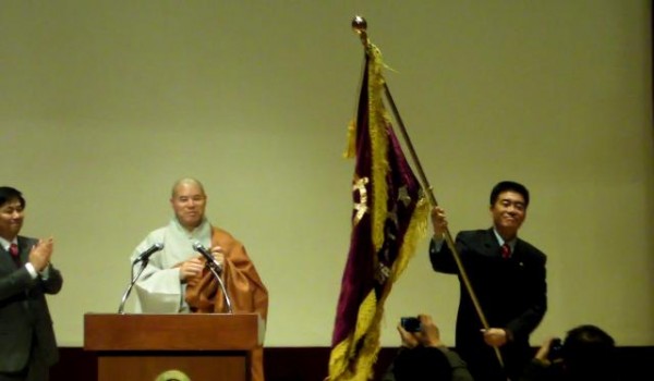조계사청년회 소리마루의 축하공연으로 시작된 이취임식은 25대 정웅정 회장의 이이임사에 이어 총재 자승스님의 청년회기와 장군죽비 이양 순서로 이어졌다.
