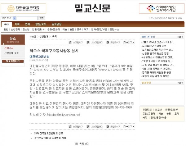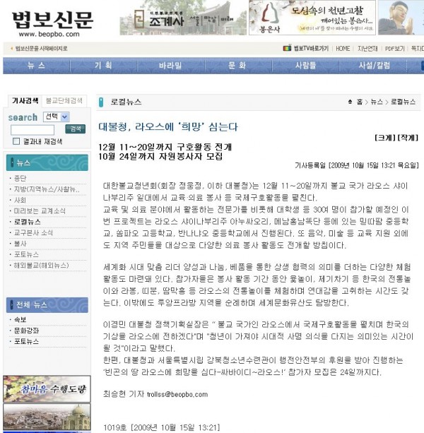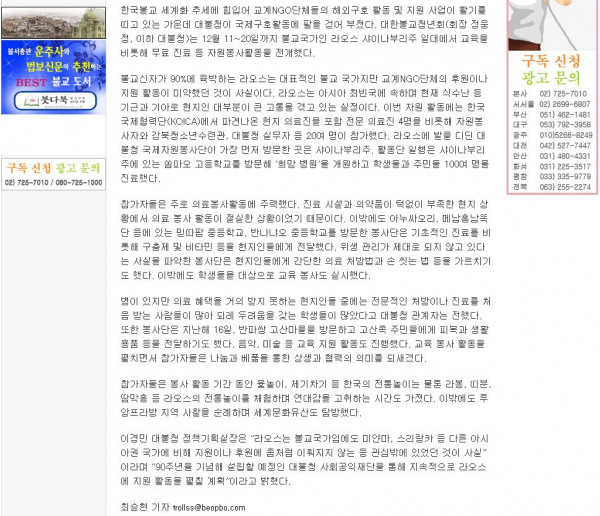 싸바이디 라오스 국제구호활동 관련 기사 모음