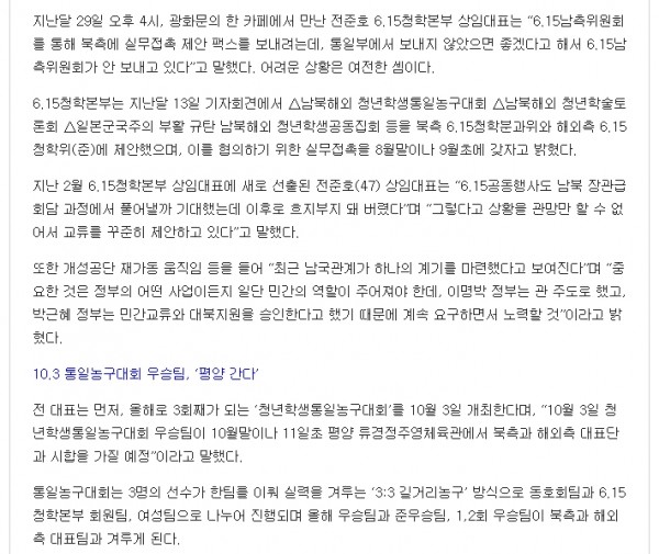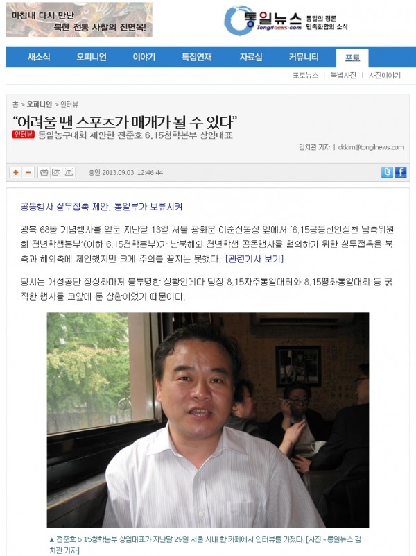 통일뉴스 인터뷰) 통일농구대회 제안한 전준호 6.15청학본부 상임대표