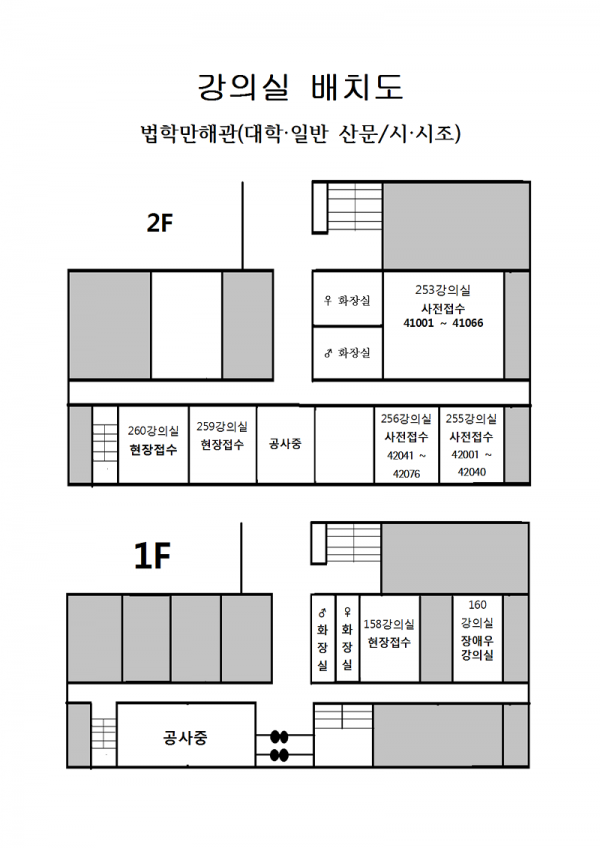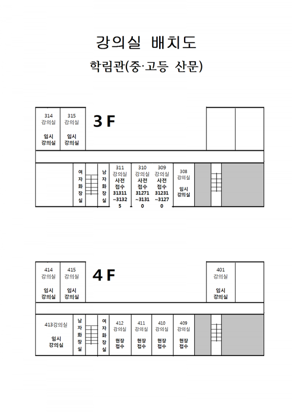 [공고] 제38회 전국 만해백일장 사전접수자 강의실 배치표 및 강의실 배치도