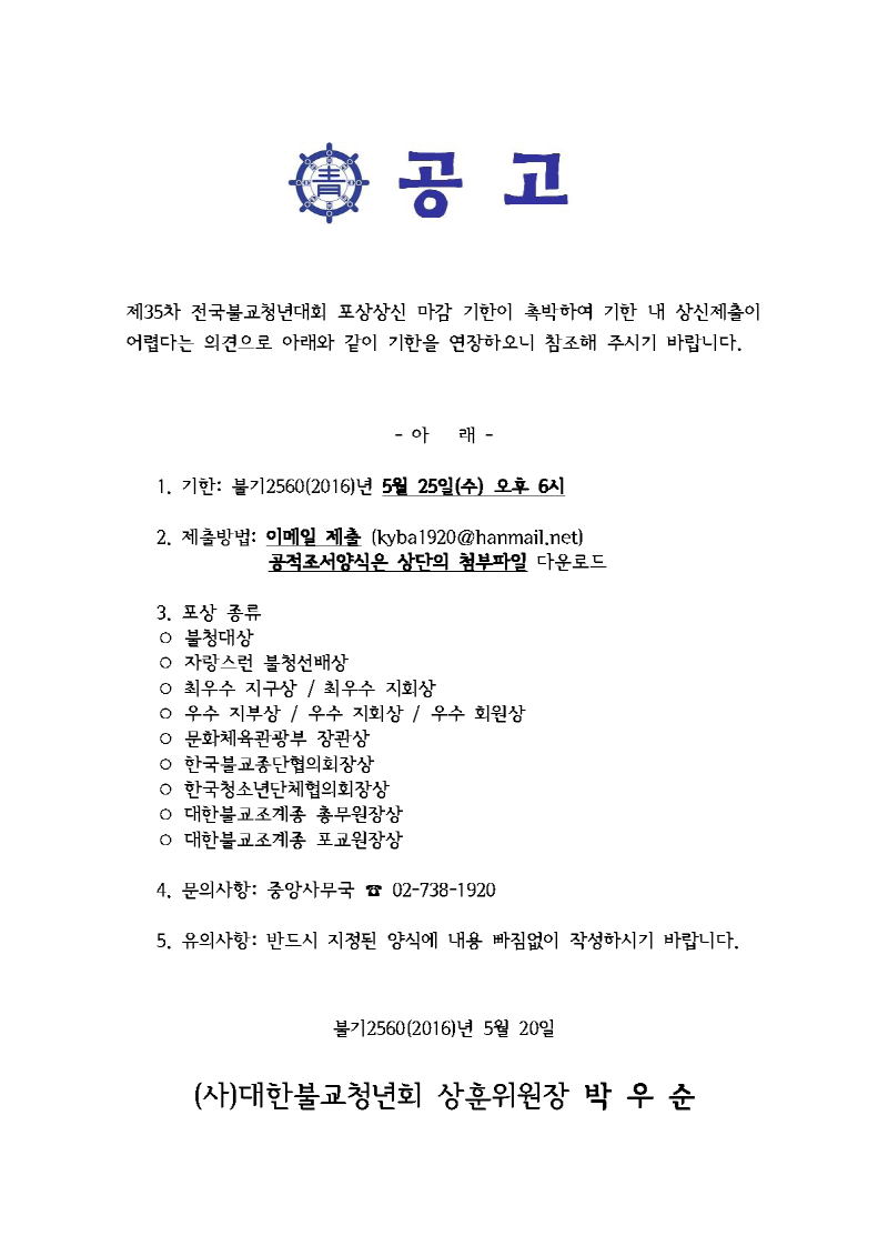 [재공고] 제35차 전국불교청년대회 포상상신 기한 연장 안내