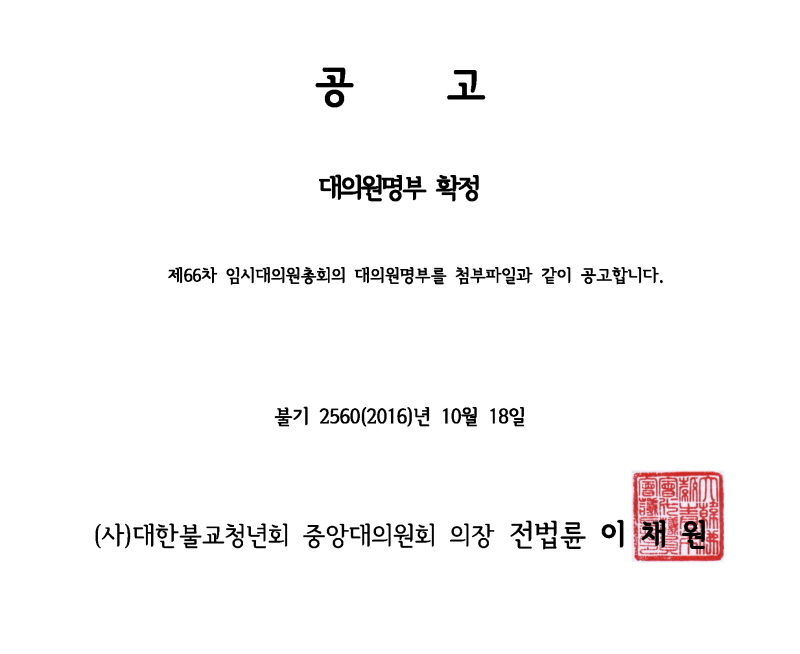 [공고] 제66차 임시대의원총회 대의원명부 확정