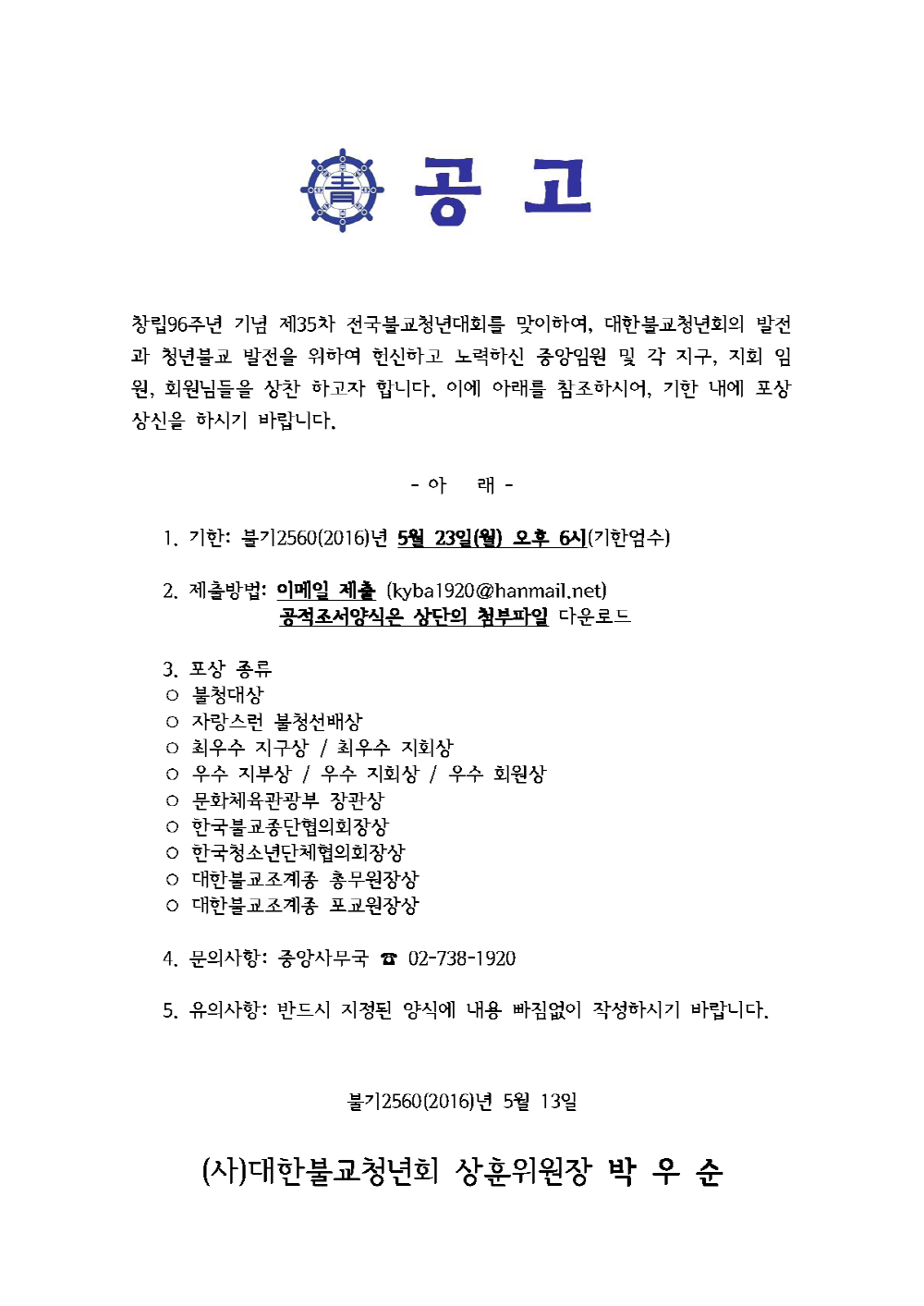[공고] 제35차 전국불교청년대회 포상상신 공고