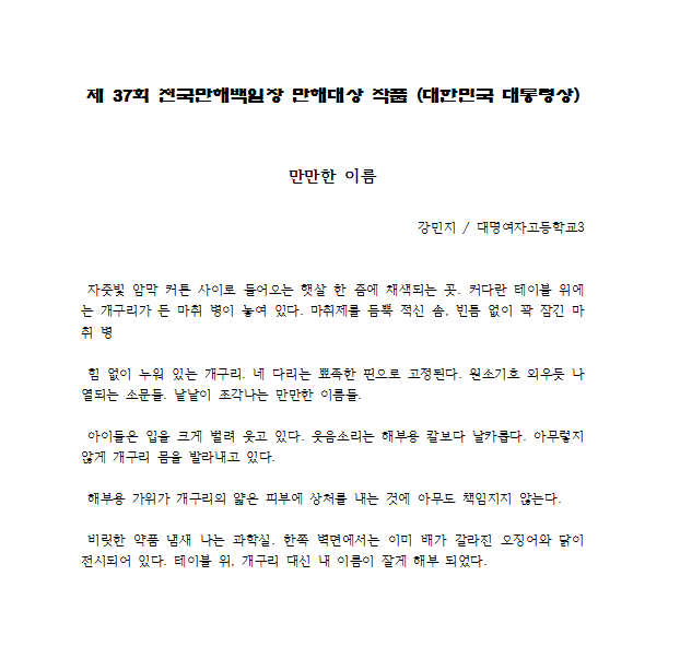 제37회 전국만해백일장 만해대상 작품(만만한 이름)