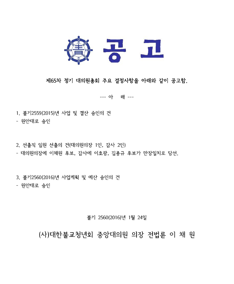 [공고] 제65차 정기 대의원총회 주요 결정 사항