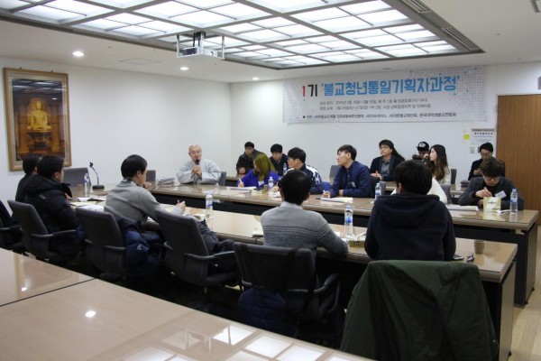 지난 2월 18일 목요일 한국불교역사문화기념관 2층 대회의실에서 '불교청년통일기획자과정' 입학식이 있었습니다. 총 6회의 강연과 현장순례로 진행되는 이번 과정은 불교계 통일일꾼을 발굴하고 양성하는 것을 목적으로 기획되었습니다.