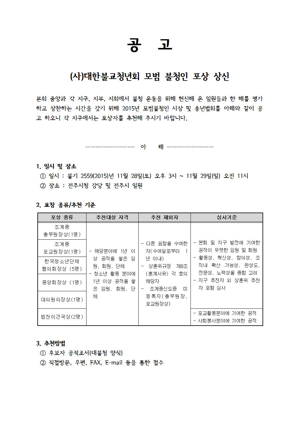 [포상] 불기 2559년 송년법회 포상상신 공고
