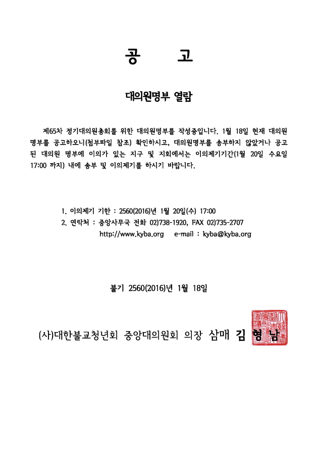 [공고] 제65차 정기대의원총회 명부 열람