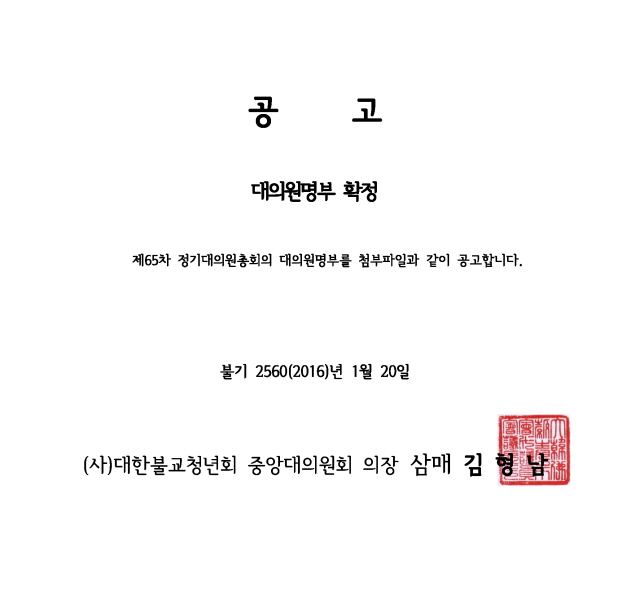 [공고] 제65차 정기대의원총회 대의원명부 확정