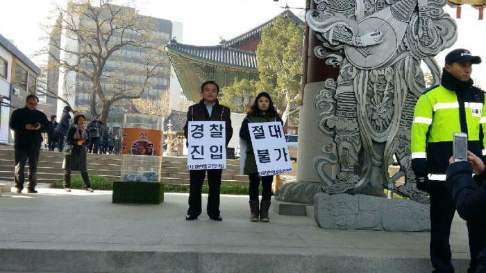 천만불심의 상징처인 조계사에 대한 경찰침탈은 절대로 용납될 수 없다.