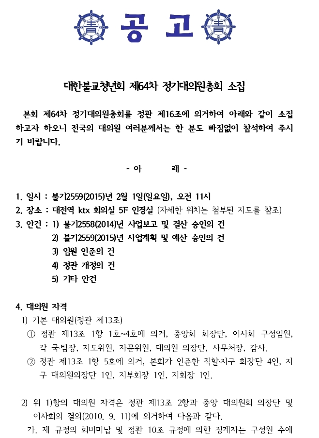 [공고] 제64차 정기대의원총회 소집 페이지 정보 작성자 대한불교청년회 작성일15-01-16 11:57 조회5,474회 댓글0건 본문 . 댓글목록 등록된 댓글이 없습니다. 이전글 다음글 목록