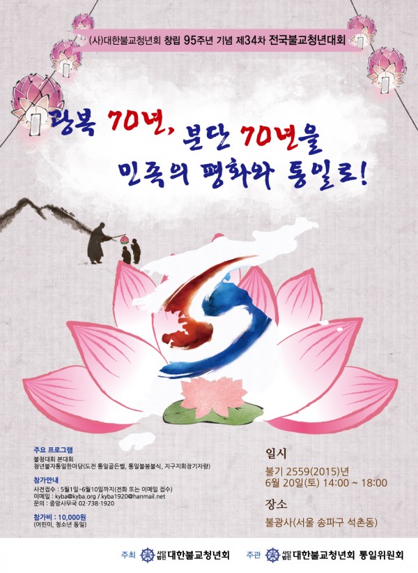 제 34차 전국불교청년대회 포스터 입니다. 페이지 정보 작성자 중앙사무국 작성일15-04-28 15:45 조회5,640회 댓글0건 본문 댓글목록 등록된 댓글이 없습니다. 이전글 다음글 목록