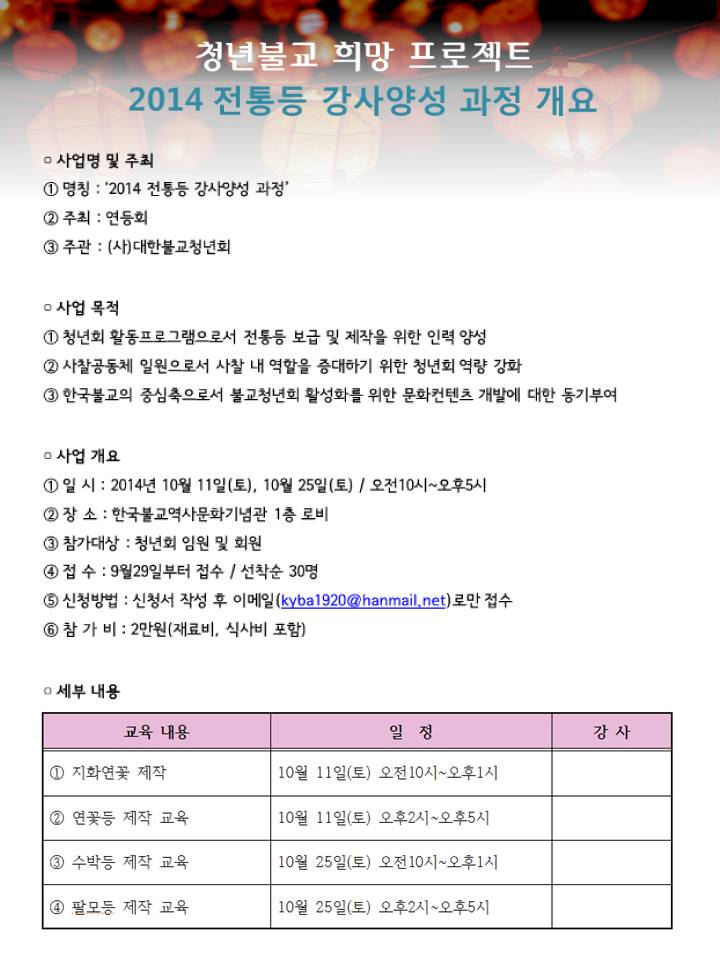 2014 전통등 강사양성과정을 안내드립니다.