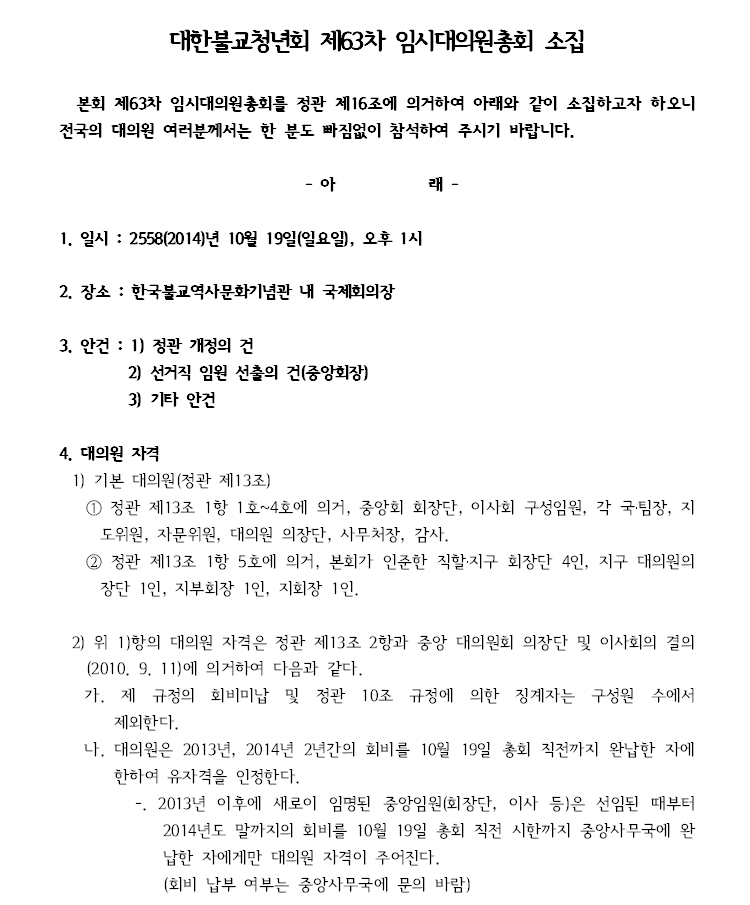 [공고] 제63차 임시대의원총회 소집 페이지 정보 작성자 중앙대의원회 작성일14-10-02 18:17 조회4,869회 댓글0건 본문 . 댓글목록 등록된 댓글이 없습니다. 이전글 다음글 목록