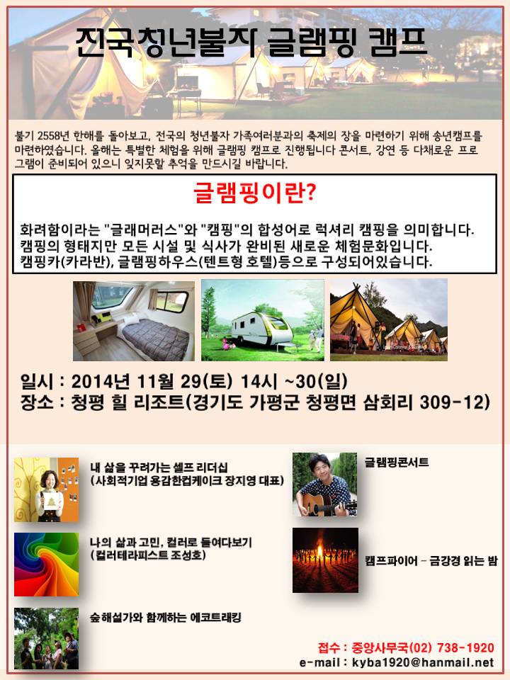 불기2558년 송년법회 글램핑 캠프를 하기와 같이 안내드립니다.