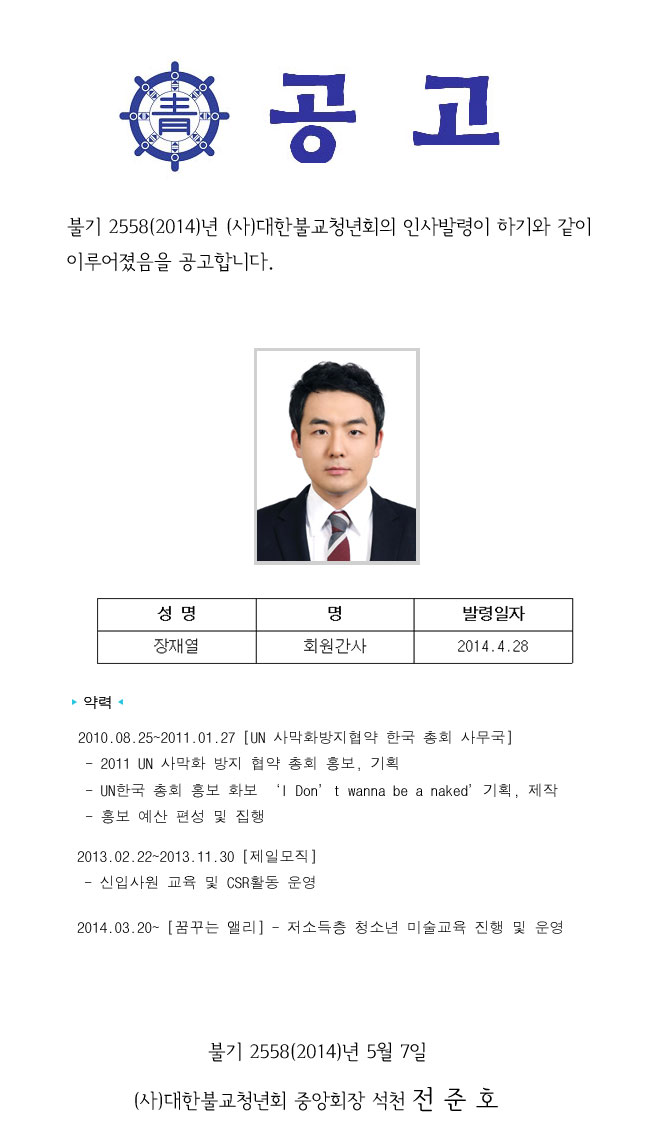 [공고] 불기2558(2014)년 중앙사무국 임원 인사 발령
