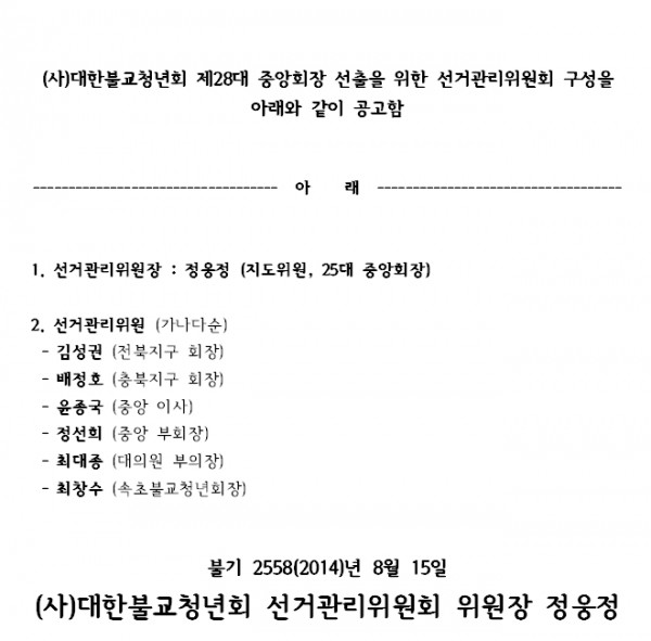 [공고] 제28대 중앙회장 선거관리위원회 구성 공고