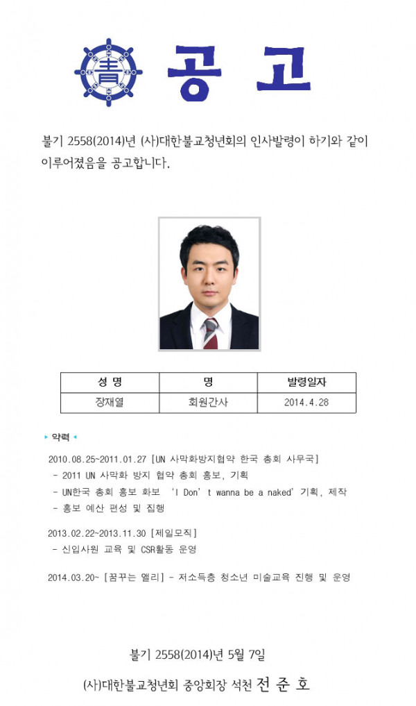 [공고] 불기2558(2014)년 중앙사무국 임원 인사 발령