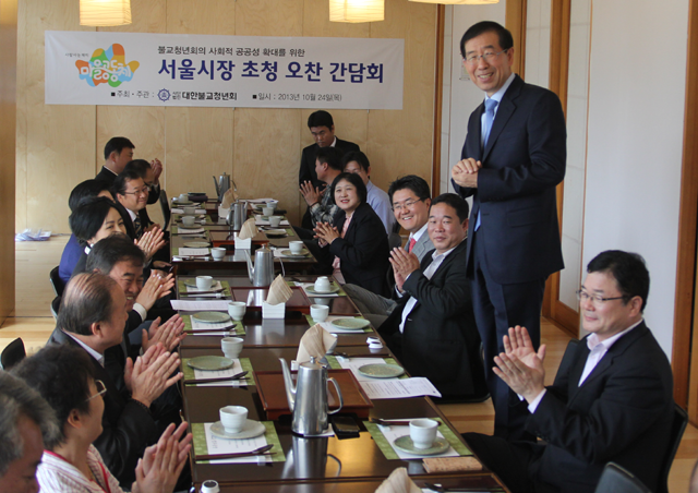 불기2557(2013)년 10월 24일(목) 오전12시 템플스테이 홍보에서 불교청년회의 사회적 공공성 확대를 위한 서울시장 초청 오찬 간담회가 있었습니다.