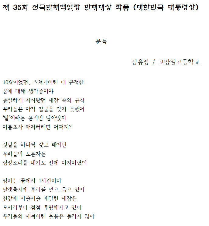 제 35회 전국만해백일장 만해대상 작품 (문득)