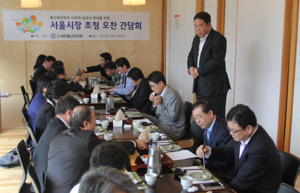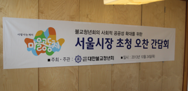 불기2557(2013)년 10월 24일(목) 오전12시 템플스테이 홍보에서 불교청년회의 사회적 공공성 확대를 위한 서울시장 초청 오찬 간담회가 있었습니다.