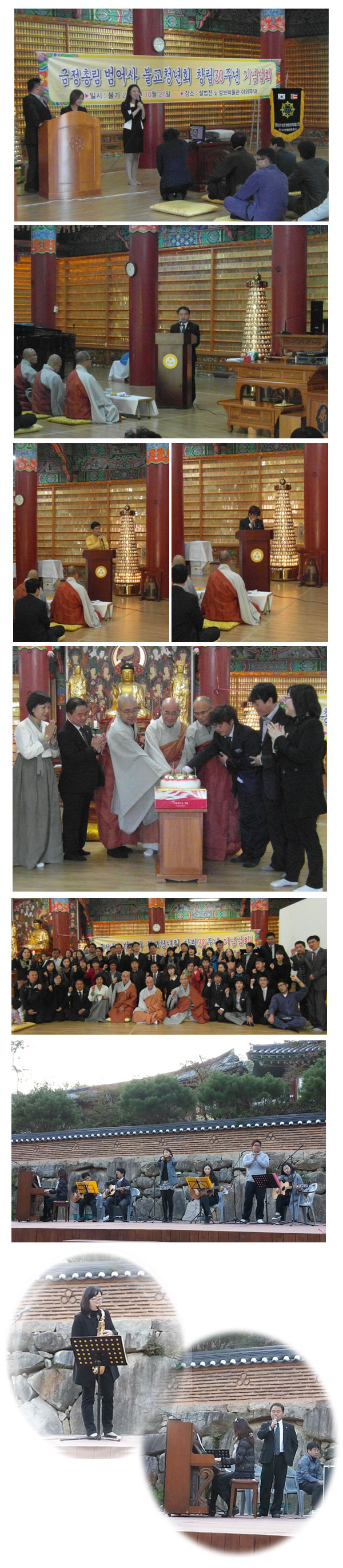 불기 2557(2013)년 10월 27일(일) 오후 2시 범어사 불교청년회 창립 30주년 기념법회에 다녀왔습니다.^^ 기념법회가 끝난 후 범어사 창립 30주년을 축하하기 위한 작은 음악회도 진행되어 참석하신 분 모두가 늦은 가을밤 즐거운 시간을 보낼 수 있었습니다. 다시 한 번 범어사 불교청년회 창립 30주년을 진심으로 축하드립니다.