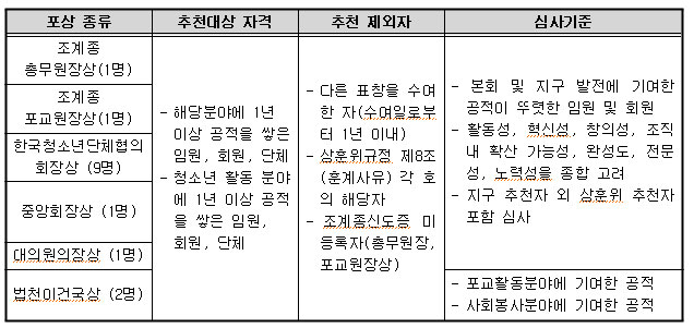 각 지구에서는 포상자를 추천해 주시기 바랍니다.