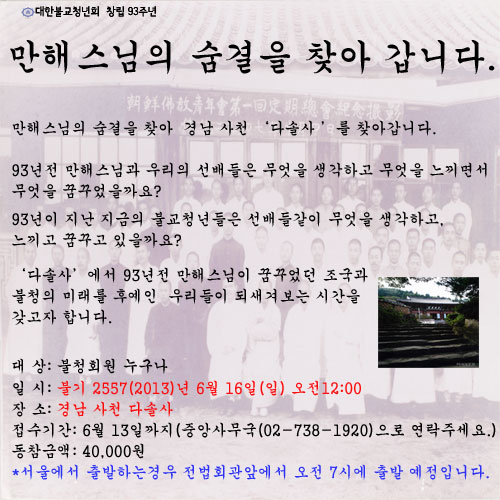 작성자 대한불교청년회 작성일13-06-05 17:04 조회5,734회 댓글0건본문