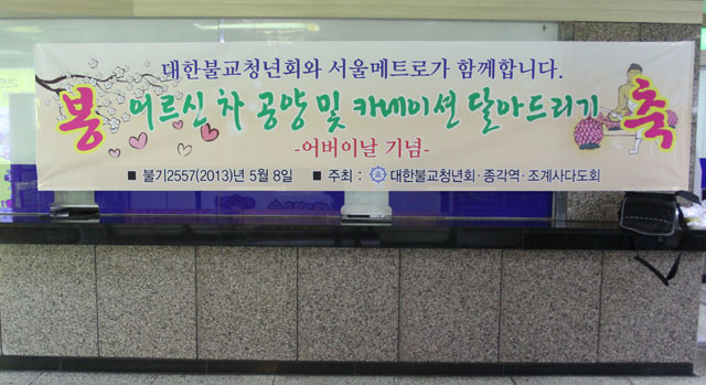 내용: 어버이날을 맞이하여 서울메트로, 조계사 다도회, 대한불교청년회가 종각역에서