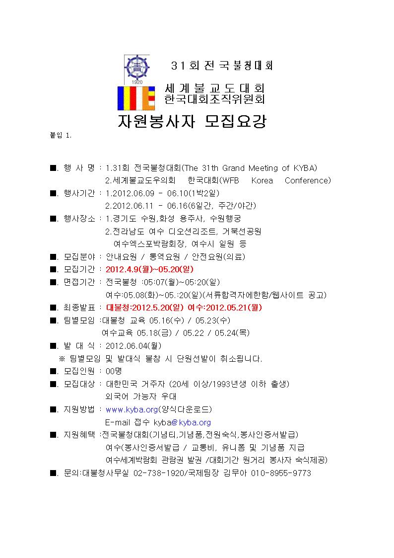 (모집) 세계불교도대회 & 전국불교청년대회 국제팀 및 자원봉사자 모집요강