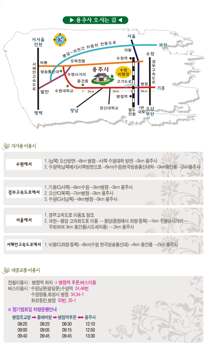 역 병점역에서 하차하여 버스를 이용하시면 용주사까지