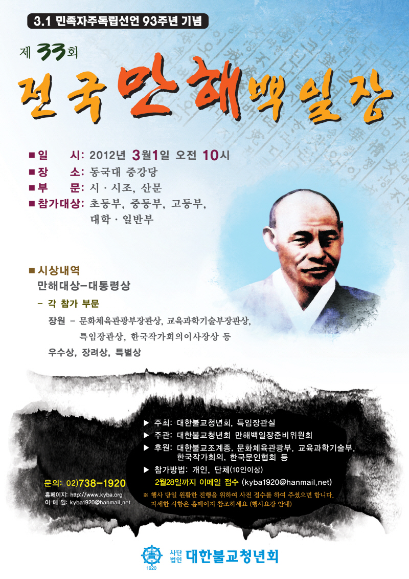 1.행사명 : 3 ․ 1 민족자주독립 선언 93주년 기념 33회 전국 만해백일장 대회
