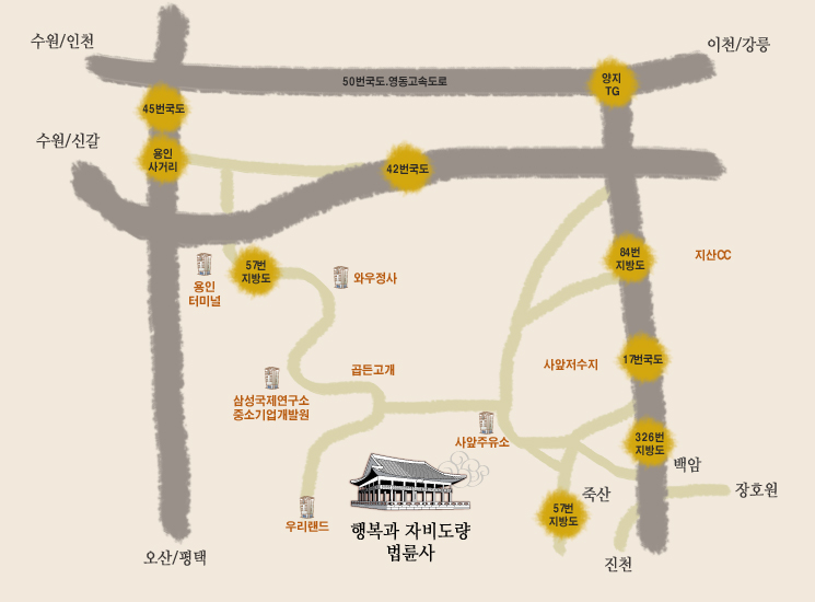 1. 장소 : 용인시 처인구 원삼면 고당리 243-2 문수산 법륜사 T) 031- 332 - 5702~3