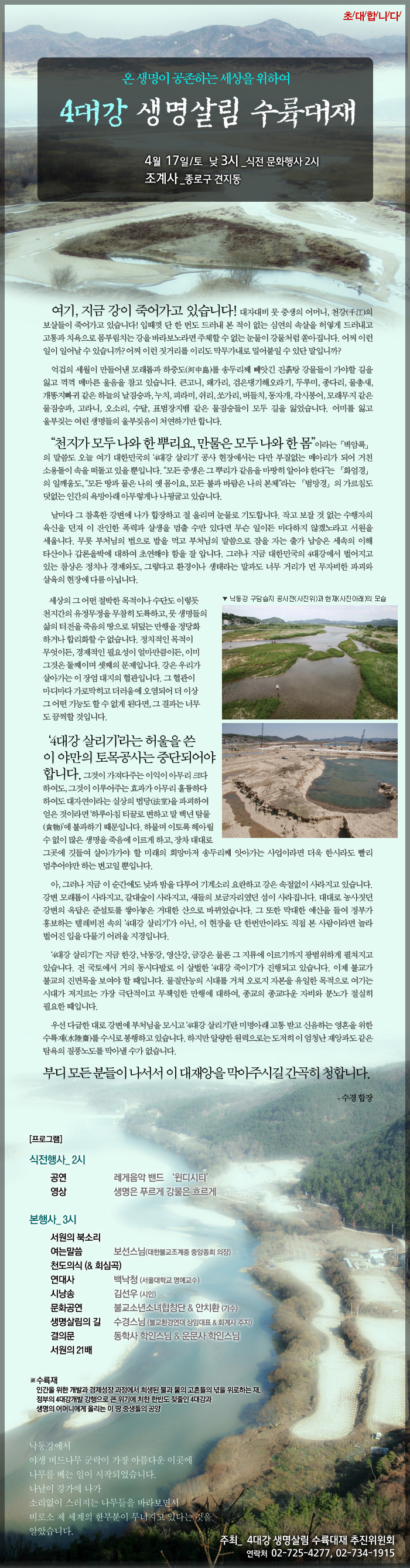 4월 17일(토) 오후 2시부터 4대강 생명살림 수륙대재가 조계사에서 진행됩니다.