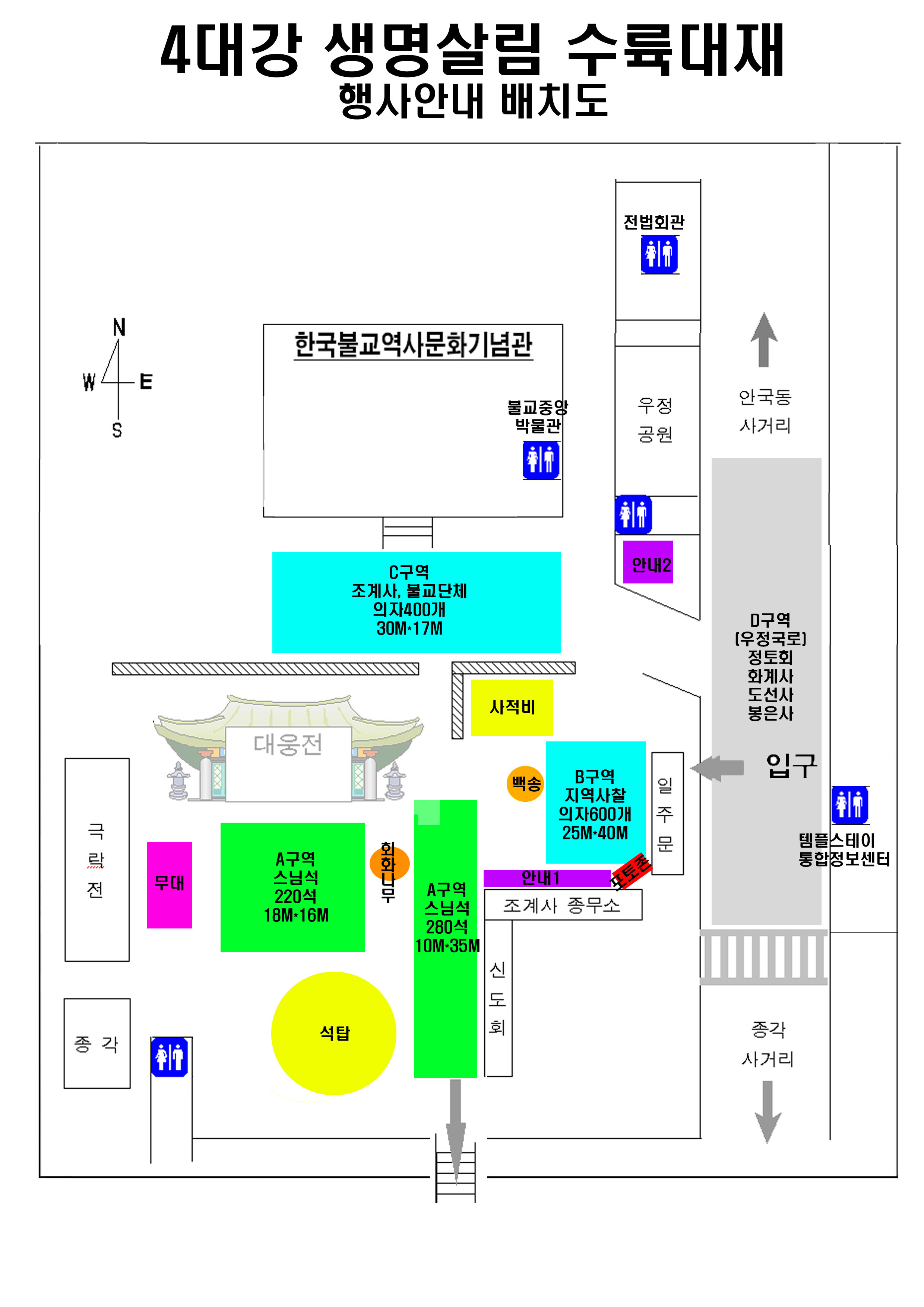 대불청은 C구역(총무원 청사앞)에 자리 배치를 받았습니다. (아래 배치도 참고)