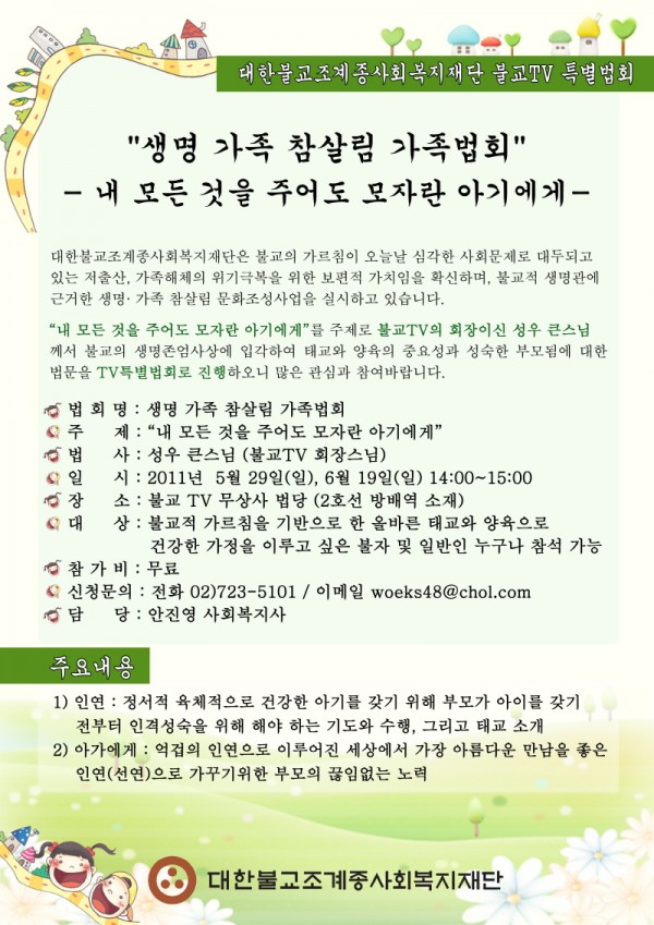 (안내) 조계종 사회복지재단 주최 생명,가족 참살림 법회초대