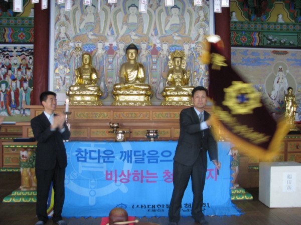참석 : 중앙회장, 현일환 총장, 신학균 충북지구 회장. 하재훈 부산지구 회장(화환), 진창호 실장