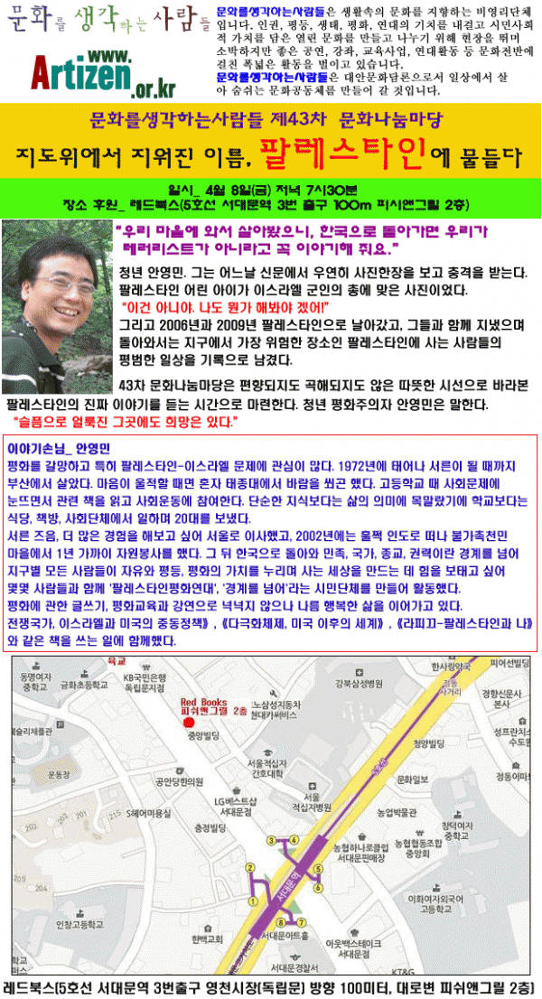 <4.8 저녁7:30>[강연]팔레스타인에물들다[무료]