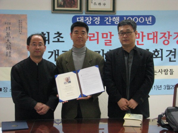 대한불교청년회는 초조대장경 간행 1천 년을 기념해 '우리말 팔만대장경' 개정판을 출간하기로 하고 29일 조계사 내 한국불교역사기념관에서 출판사 '모시는 사람들'과 출판 계약을 맺었다고 밝혔다.
