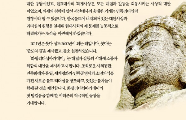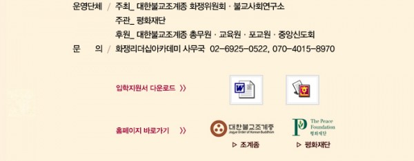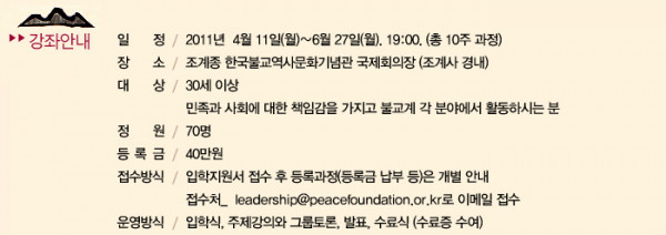 평화재단에서 대한불교조계종과의 교육협력사업으로 ‘화쟁리더십아카데미’를 다음과 같이 개설합니다