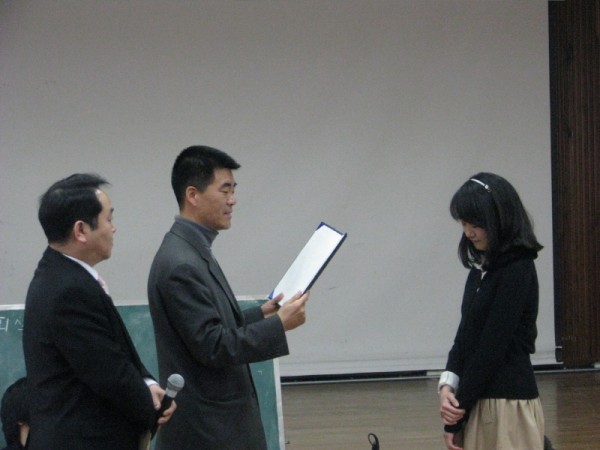 산청 간디고교 교장님을 비롯한 교직원 3명 참석 약 200여명 학생들이 참석한 가운데 시상식이 진행되었습니다 중앙회장님께서는 한국사회의 미래인 청소년들이 밝은 미래를 위해 노력하며 살아야 할 것을 당부하였으며 만해대상 수상자인 송가을해 학생의 수상을 축하였습니다.