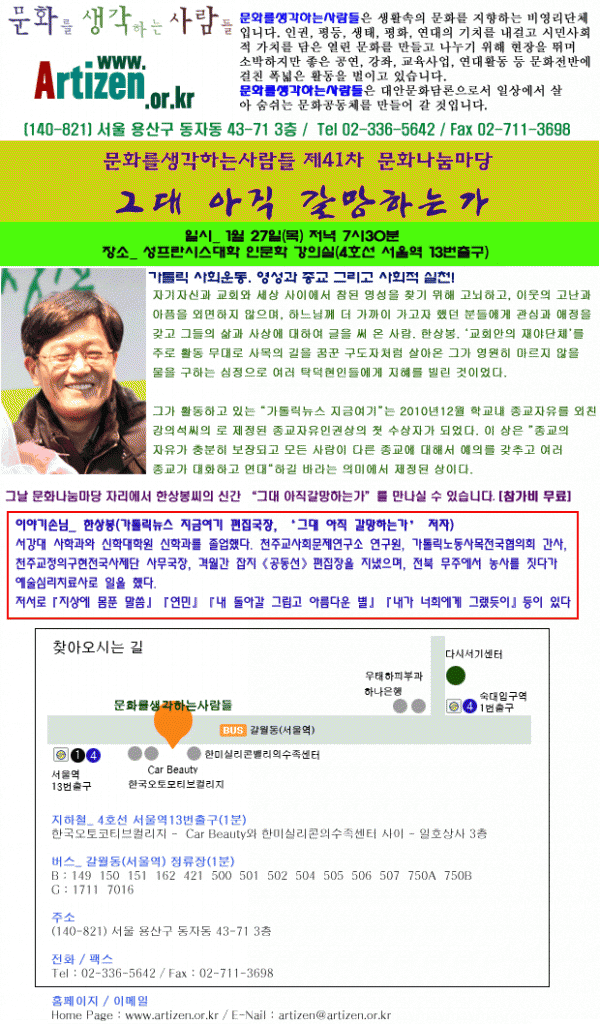 [1.27(목)저녁7:30] 41차 문화나눔마당 "그대 아직 갈망하는가"