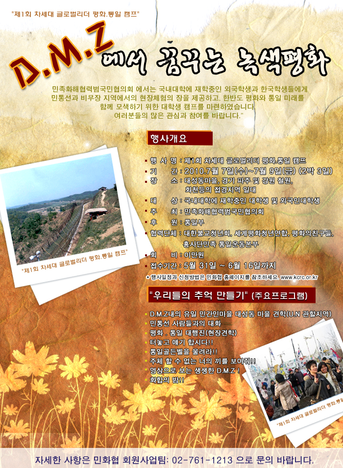 대불청은 민화협 주최로 타 통일단체들과 함께 아래와 같은 캠프를 진행합니다.