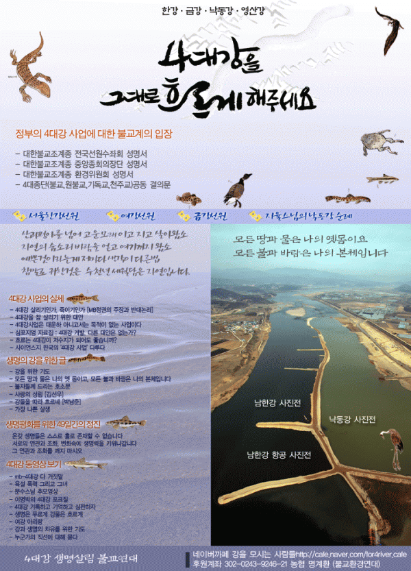 또 행사 마지막에는 4대강 개발 중단, 생명살림 실천 등의 내용을 담은 촛불 서원문이 낭독될 예정이다.
