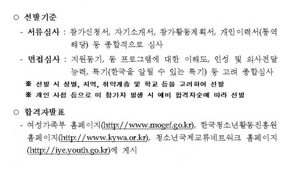2015년 한중 청소년교류 1차 파견 대표단 참가자 모집 (여성가족부)