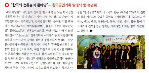 PS. 해외에서 새로운 공연팀들이 국내에 들어오기위해 준비중입니다(예: 에콰도르 인디언 음악팀, 중국기예단, 러시아 or 우크라이나 or 벨라루시아 댄스팀, 필리핀 음악팀, 아크로바틱팀등...) 2010에는 어떤 멋진팀들이 국내에 들어올 수 있을지 저도 궁금합니다 *^o^*