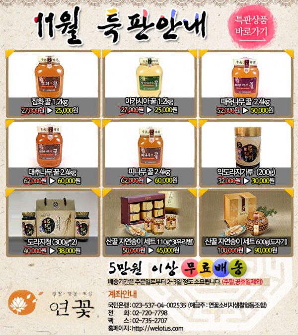 연꽃생협 11월 특판 안내입니다.