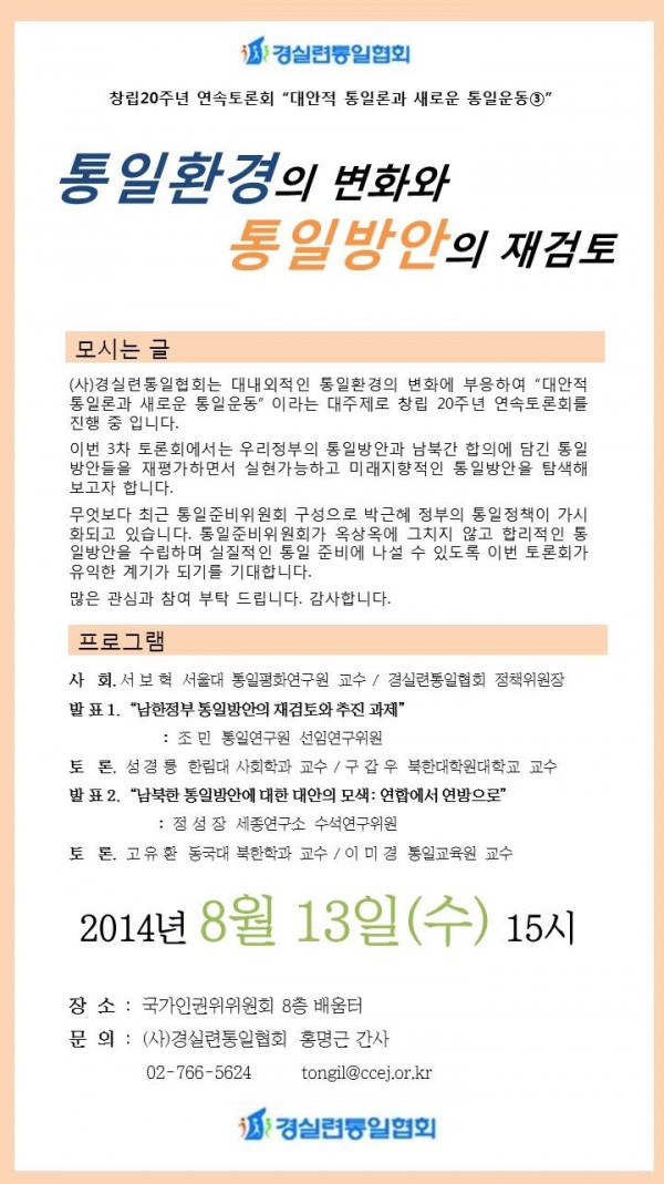 [경실련 토론회] "대안적 통일론과 새로운 통일운동" (8/13)