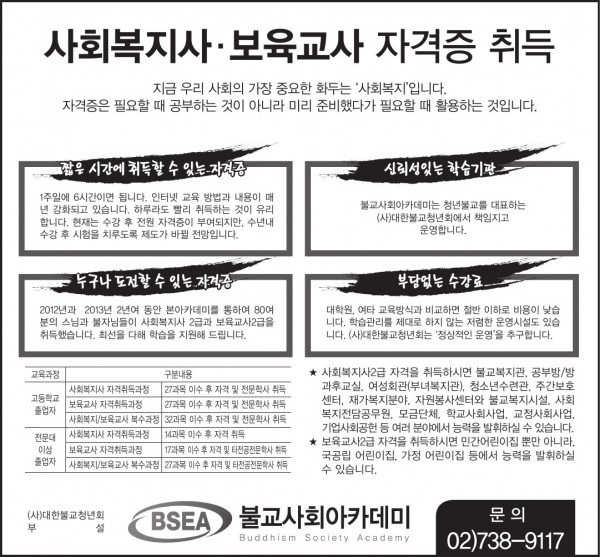 안녕하세요?(사)대한불교청년회 산하 불교사회아카데미입니다.
