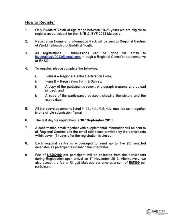 IBYE & IBYF 말레이시아 2013 안내자료에 관심있으신 분들은 9 월 25일 까지 중앙사무국(02-738-1920)으로 연락부탁드립니다.